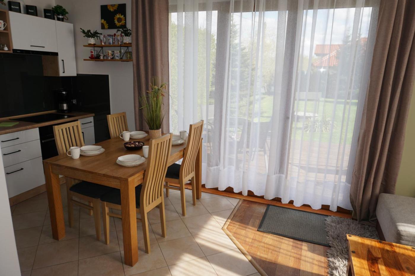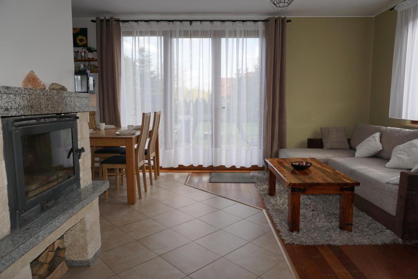 Dom z 2 sypialniami. This holiday home features a fireplace. Boasting a private entrance, this holiday home features 1 living room, 2 separate bedrooms and 1 bathroom with a shower and a hairdryer. Guests can make meals in the kitchen that has a stovetop, a refrigerator, a dishwasher and kitchenware. Featuring a terrace with garden views, this holiday home also features a washing machine and a flat-screen TV with streaming services. The unit has 5 beds. Dom wakacyjny - 6 osobowy. Powierzchnia pokoju ok.: 86 mkw.