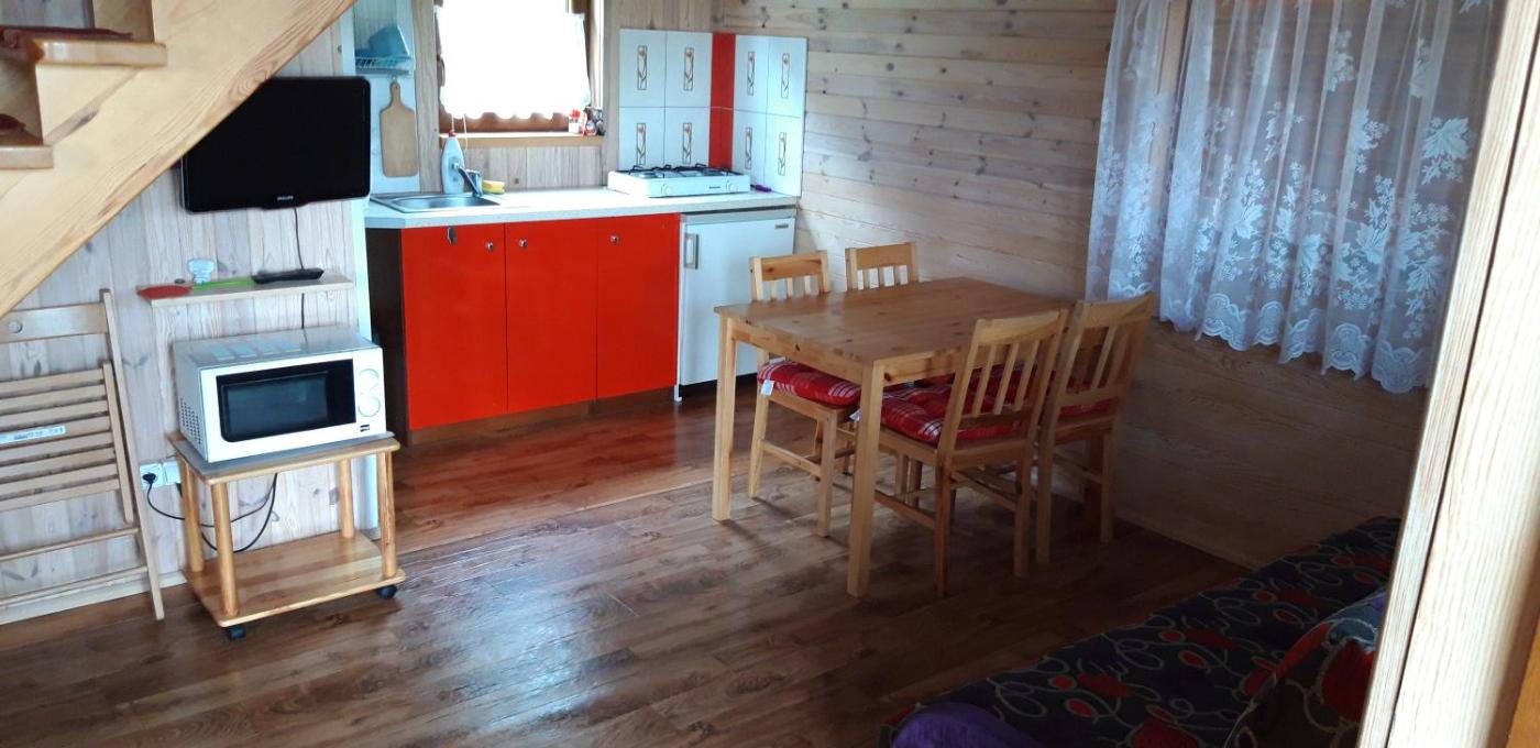 Domek. This chalet comprises 1 living room, 2 separate bedrooms and 1 bathroom with a shower. Guests will find a stovetop, a refrigerator, kitchenware and a microwave in the kitchen. The chalet also provides guests with a barbecue. Featuring a terrace with garden views, this chalet also provides a tea and coffee maker and a flat-screen TV. The unit offers 5 beds. Domek - 5 osobowy. Powierzchnia pokoju ok.: 50 mkw. ;
