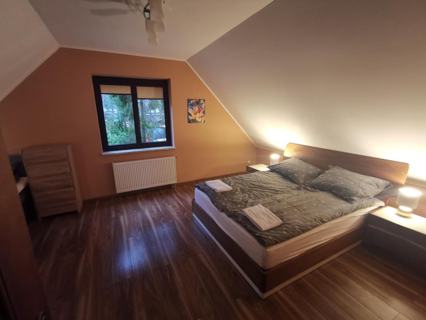 Dom z 3 sypialniami. Guests will have a special experience as this holiday home features a fireplace. Featuring 3 bedrooms, this holiday home offers 2 bathrooms with a shower, a seating area and terraceyou can relax. Guests will find a stovetop, a refrigerator, a dishwasher and kitchenware in the kitchen. The holiday home also has a barbecue. The holiday home offers a private entrance, a dining area, an electric kettle, a flat-screen TV, as well as garden views. The unit has 6 beds. Dom wakacyjny - 9 osobowy. Powierzchnia pokoju ok.: 78 mkw.
